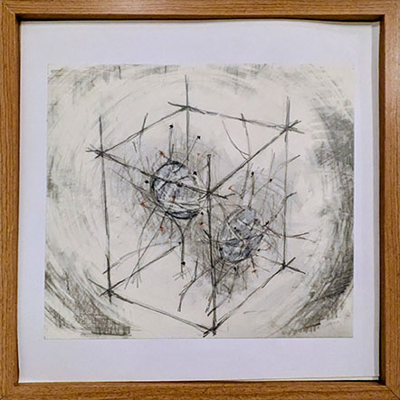 1、 三点の小さなエスキースは、平面でありながら立体を感じさせる小品である。まず造形作家の作者が平面作品を出品されたことに驚いたが、作者にとって平面と立体という分け方はあまりないのかもしれない。造形家の多くは、作品を作る前に多くの作品を紙に描いて検討するに違いない。