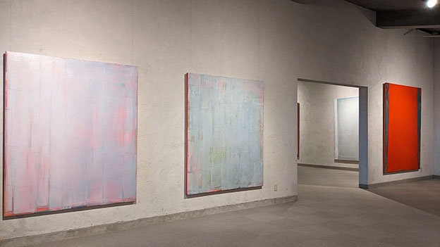作者が言われていたのは、この会場の空間と絵の一体感。展示空間が違うと絵のイメージが異なる。あらためて展示空間の重要性を感じた。あのロスコは自身の絵を展示するためロスコ・チャペルをつくるが著名建築家のフィリップ・ジョンソンの設計が気に入らず途中で変更させたほどだ。日本では住宅環境もあり抽象画の大作はなかなか描くことも見る事も出来ない。もしも今回の大作群をチェルシー地区の大きな画廊に展示したら、アメリカ人画家の作品と信じて疑わない。日本の現代抽象絵画のレベルを提示している。