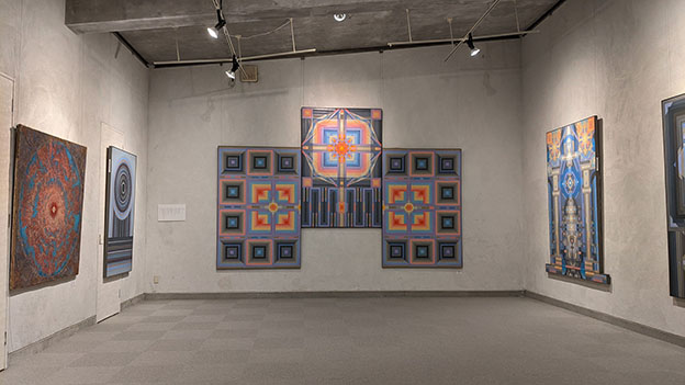 振りむけば 二紀和太留の代表作『荘厳』が奥の聖なる壁から見つめている……
