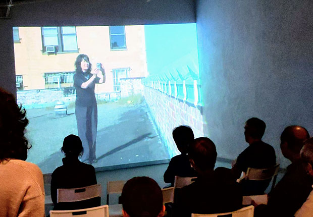 映像作品①「言葉Silent Breath,2001 New York(2017) 約36分」2001,10.11に撮影。9.11同時多発テロについて市民36人の発した言葉(英語)と日本語が組み合わさり画面の地から立ち上がり、地に戻る。②「Silent