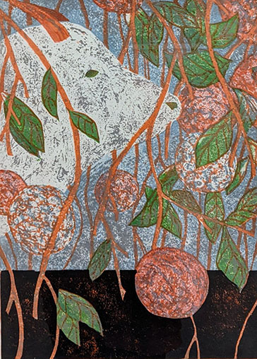 木版の作品、今回の展覧会で唯一色彩を奏でられていた。ゆったりとした植物の葉は、ある種こだわりのない包容力を感じさせた。