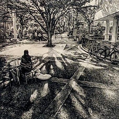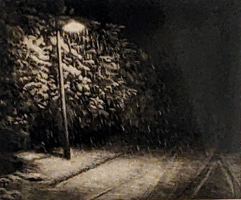 刻銘に丁寧に、公園や散策路を、その木立を淡々と描いている。光の表し方が絶妙だと感じる。ゆっくり丹念に長い時間をかけて制作されるとのこと、版画そのものに作者の人格が投影されているかのよう。