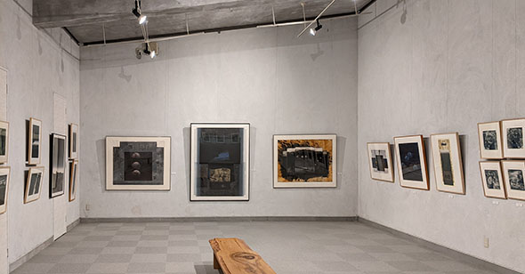 (写真の一部にガラスの反射があります。作品の記号はA:アクアチントC:コラグラフ E:エッチング M:メゾチントS:シルクスクリーン)