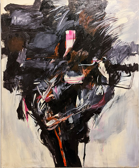 「無言」はそれに比して、黒の塊から何かが重く苦しく滲み出てくる感がある。この重さの感覚はどこから来るのだろう、作者固有のものなのか、あるいはコロナ、さらにウクライナ戦争を経て来た我々の時代を反映しているのだろうか。恐らく、その両方なのだと思われる。作者は、ふとあるものに惹かれ、それをきっかけに、関り動き出し……そして力強い表現に至っていく、そんな流れではなかろうか。