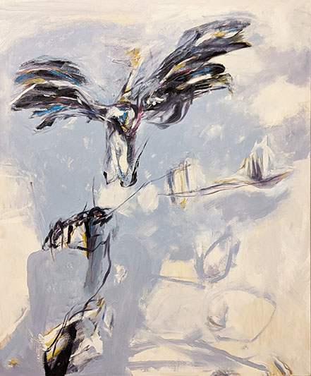主題は音楽曲にモチーフを借りて、スケルツォ(第3楽章)と呼ぶようなスピード感のある筆触と、飛翔感のある画面を創出している。作品の中には、慌てて動き出すかのような、楽曲でいうとフィナーレの前段に展開される、ドタバタ感のある愉快な形態も描いていて、実に多様なscherzoとなっている。