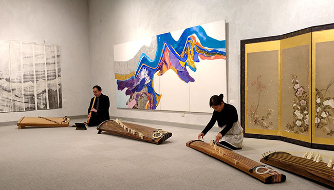 毎年恒例のレクイエム展で今年は25周年。残念なことに当日は台風7号が直撃する予報で電車も止まり、来館者は少なかったが、国立には不思議なほど台風の影響はなかった。今回は佐藤氏、門脇氏による演奏会を開いた。新進の佐藤氏の5つの25絃箏と尺八で雅な世界を堪能できて感謝。お二人は様々の演奏に挑まれていて、斬新な演奏にも挑戦されることに感銘を受けた。世界の平和を祈るイベントであるが、すべての命に対する慈愛の心で演奏をされた。