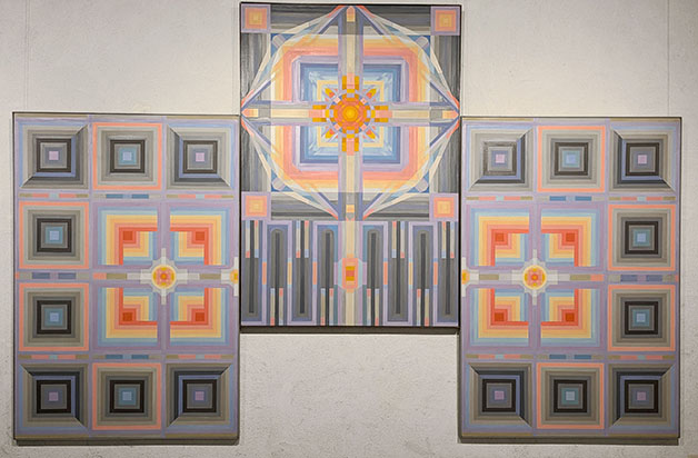二階の第一室は館長の父君・二紀和太留の作品で占められている。作品、特にトリプティックな大作の「荘厳」、私がこの美術館と初めて出会いその作品に対峙し、数十分見続けていた記憶が蘇ってくる……詩が自ずから湧き、さらにそれ以降数多の作品群に触れ関わっていく端緒となったものだ。