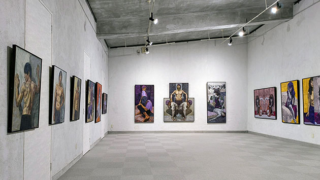 彼女とは、ある作家の推薦で、アートフェスタに参加されたのが出会いだった。その彼女の出品作は、若い筋肉隆々の男性がモデルの卓越した人体デッサンであり、かつての野獣派も逃げだすフォービズム。正直にいうとそれらは典型的な過去の油絵のように見え少しオールドファッションという第一印象を持った。しかし彼女の個展で改めて多くの絵を見ると全く違うことが分かった。