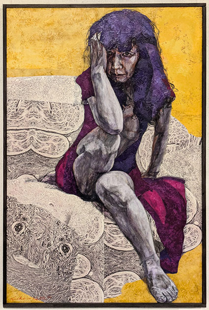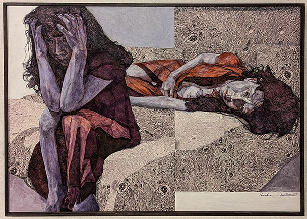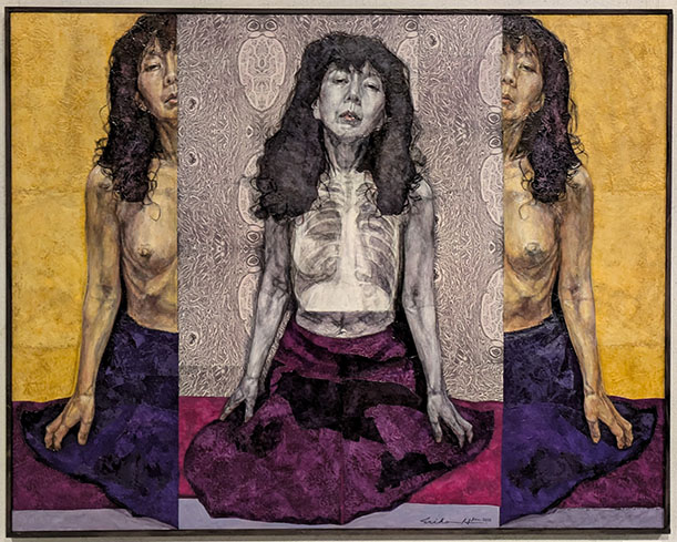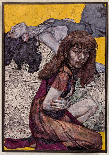以前、宇フォーラム美術館の会員展で拝見したことのある画家だ。画は女性が苦しそうに沈んだ表情で、その病理(癌)に立ち向かっているものだった。悩み打ちひしがれ、その苦しみをそれでも受容し諦念の中で乗り越えていく……そんな感触が伝わって来た。