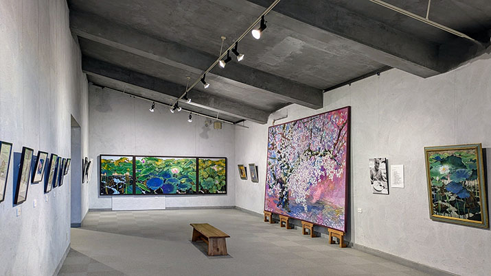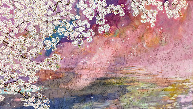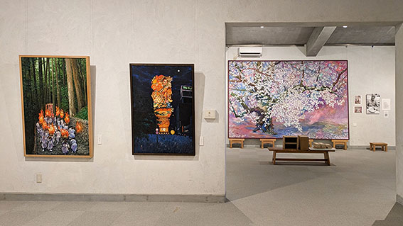 そして、今回手前の部屋に並べられた作品群は一転して自然や動物がテーマである。特に「櫻霊」「転生浄土」「蓮世」は見る人を瞑想の世界にいざなう。