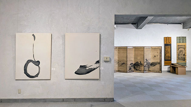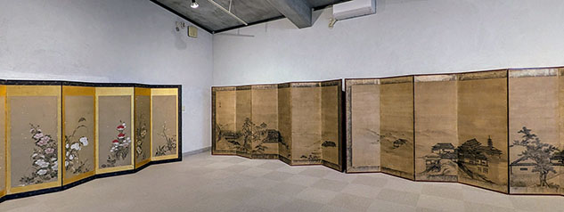 宗達派「四季草花図」、雪舟「水墨楼閣山水図」