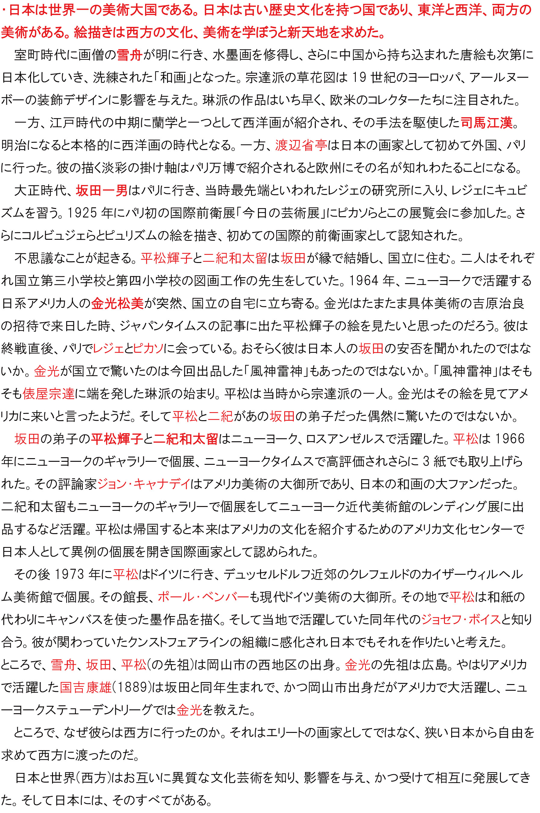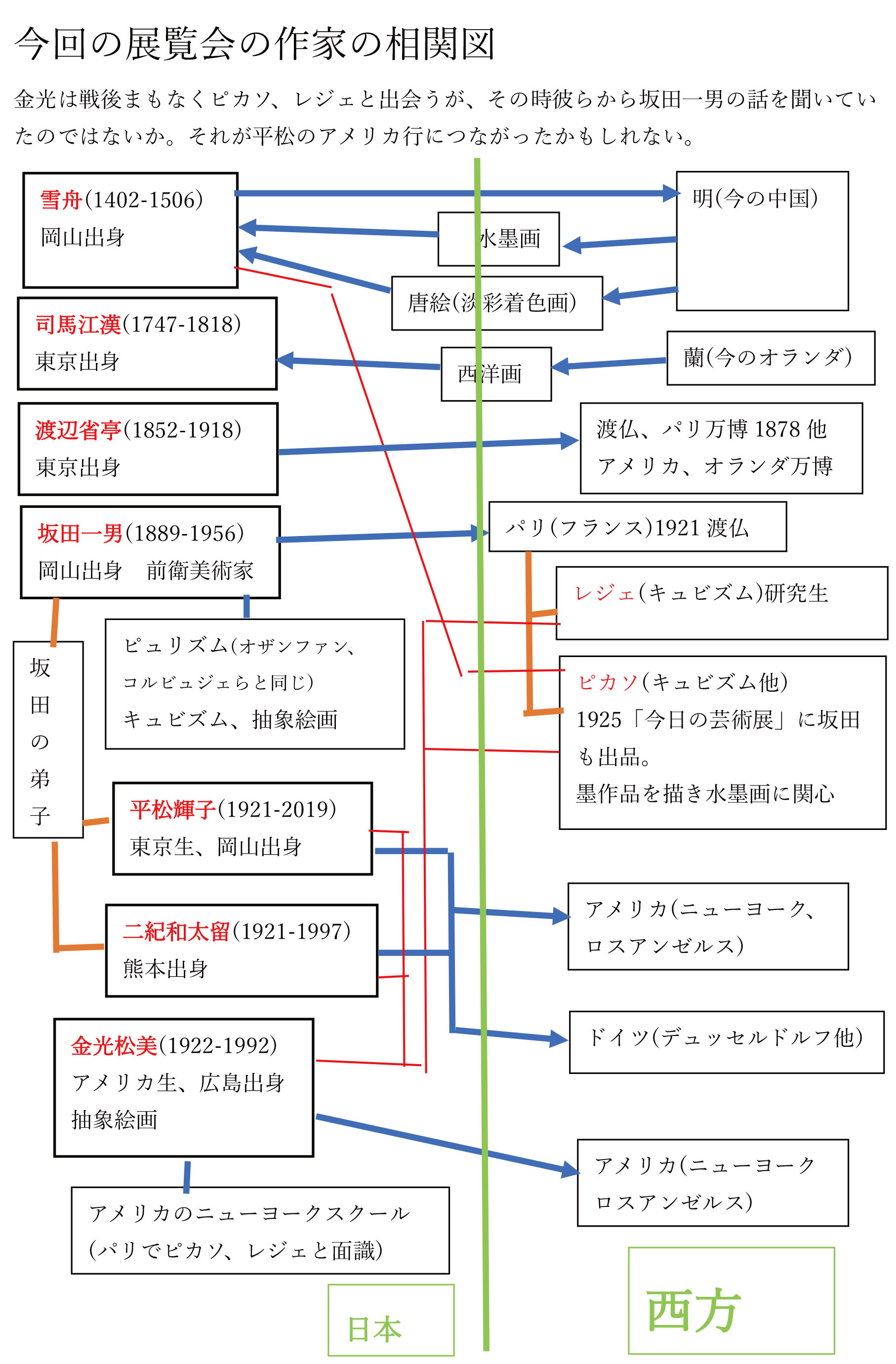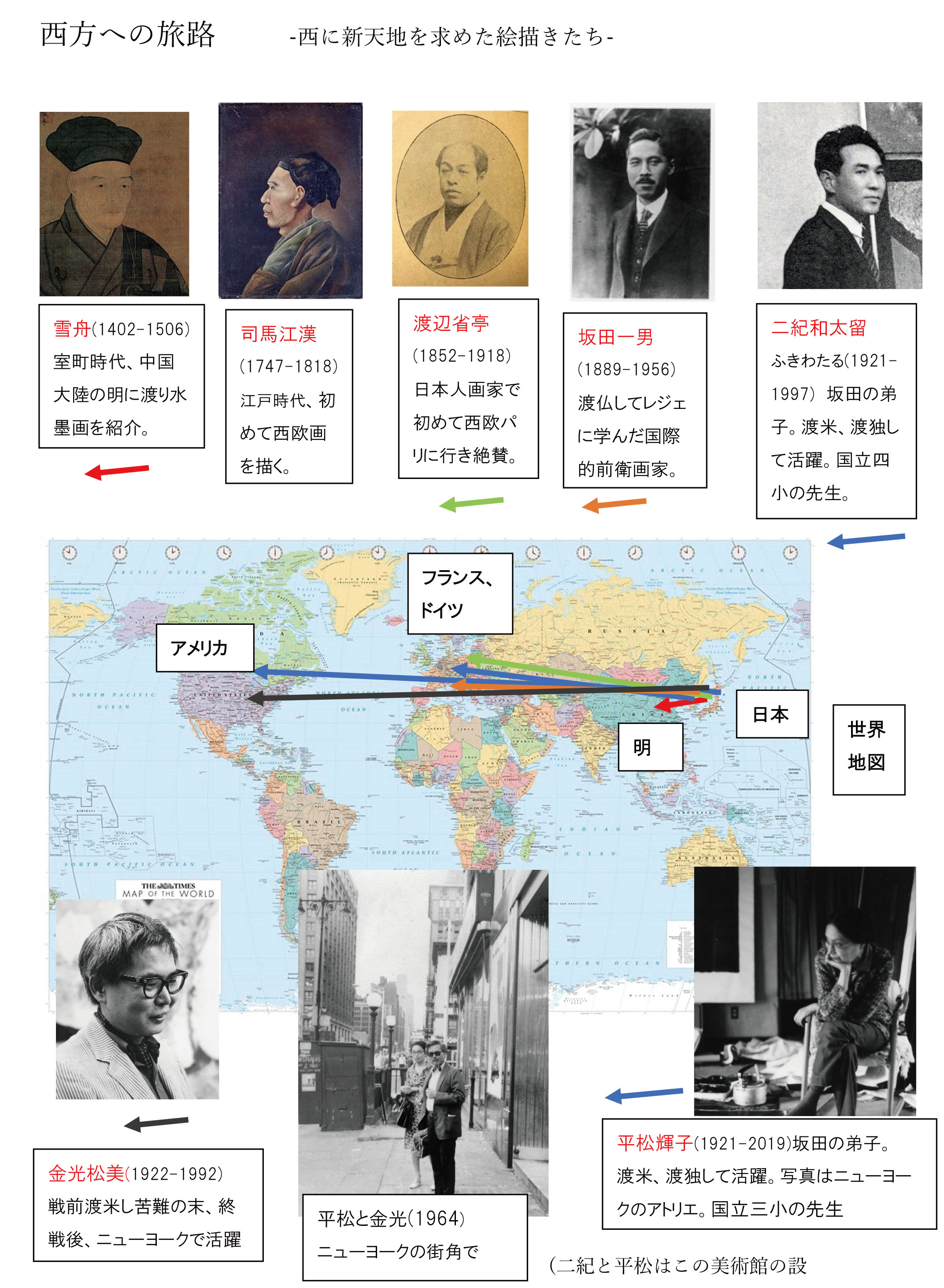 雪舟、司馬江漢、渡辺省亭、坂田一男、平松輝子、二紀和太留、金光松美、(前田鳳堂)