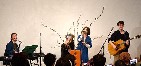 4月12日(土) トーク&ライブ いのちの時間ASUMI(ボーカル) TOKI・SHIMIZU(ギター、ボーカル) 斎藤薫(お花) 絵本BIRTH原画展・マルシェ同時開催 斎藤さんがライブで花を生けるというパフォーマンス。 シンガーソングライターのASUMI さんとTOKI SHIMIZUさんのデュオライブトーク。 斎藤薫 ASUMI TOKI SHIMIZU 斎藤薫