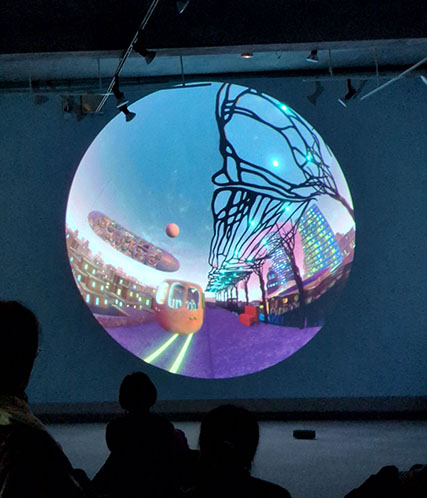 360度の円形パノラマによるユニークなアニメ。日常生活の描写から始まり、スベクタクルなCGが大きな壁面に投射された。その映像美に観客は目を見張る。ぜひ多くの人に見てもらいたい。