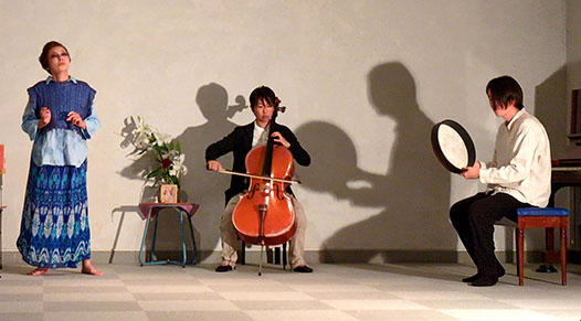 ・14:30 成田千絵チェロ、小谷マユミVoice、春真彌 日舞