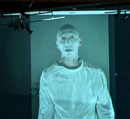 近清武氏により5月27日に当館で撮影された笠井氏のダンスビデオを、以前のステージの写真と合成し、まるで館内で笠井氏と空豆氏たちが踊っているかのように再現された。