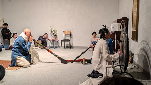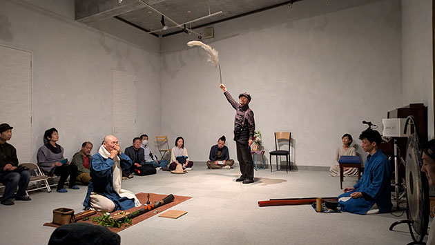 ・16:00祈りのとき KNOB (デジュリドウと般若心経朗読)、稲垣遼(デジュリドウと石笛)、山本コヲジ(響き)、中野妙香(舞)、新屋賀子(ピアノ)、山本由也(人形遣い)